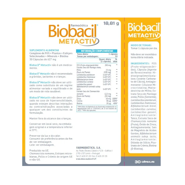 Biobacil Metactiv, 30 Cáps. – Farmodiética