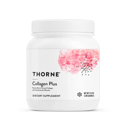 O Colágeno Plus Thorne é um suplemento avançado de colagénio formulado para promover a saúde da pele, cabelo e unhas.