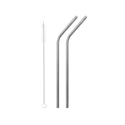 Kit 2 Palhinhas Curvadas Inox + Escovilhão – Qwetch