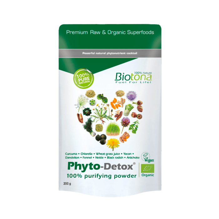 Biotona bio Phyto-Detox® é uma mistura sinergética de pós de plantas secas ao sol, biológicas.