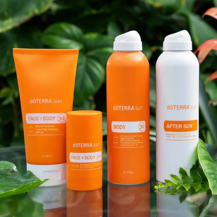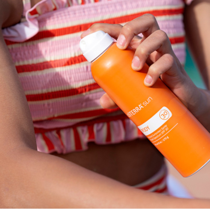 O Spray Solar Mineral de Corpo doTERRA, com FPS 30, oferece proteção solar de largo espetro para todo o corpo, numa fórmula nutritiva e intensamente hidratante. Testado sob controlo dermatológico, é resistente à água até 80 minutos.